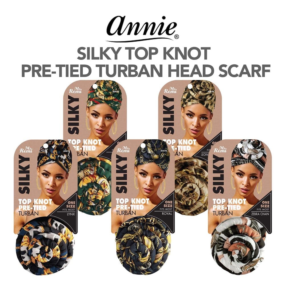 ANNIE Silky Top Knot Pre-Tied Turban Head Scarf [Pattern Assorted]