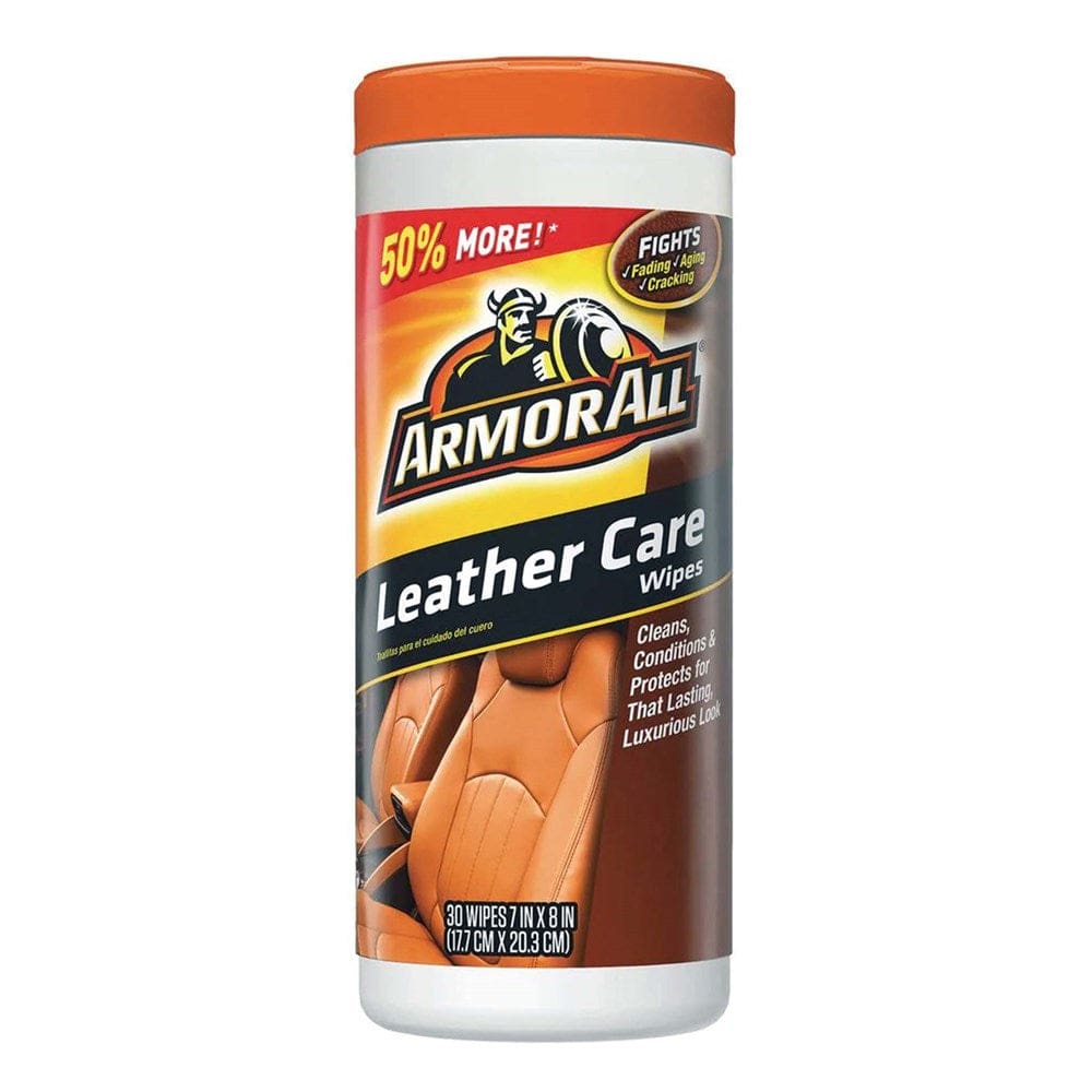 Wipe automotive leather surface with Armor All® Leather Wipe to clean, protect and maintain the appearance.