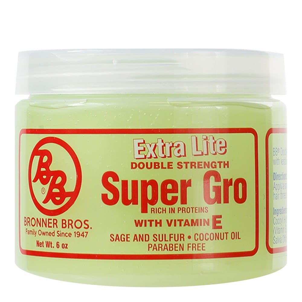 - BB Double Strength Super Gro Extra Light is unique in its ability to relieve itchy scalp, splitting ends, dullness, and provides the roots with necessary organic oils and nutrients to promote healthy hair.