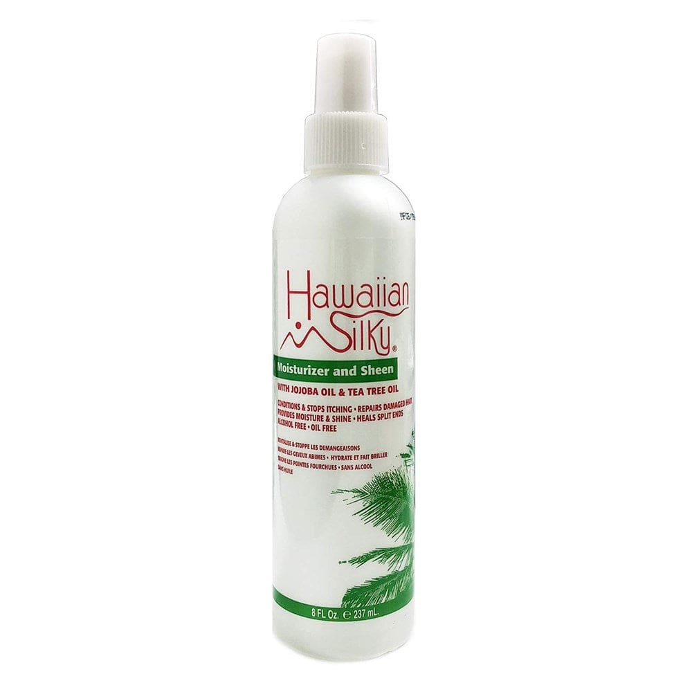 - Hawaiian Silky Moisturizer and Sheen Spray is specially formulated with Jojoba Oil and Tea Tree Oil.
