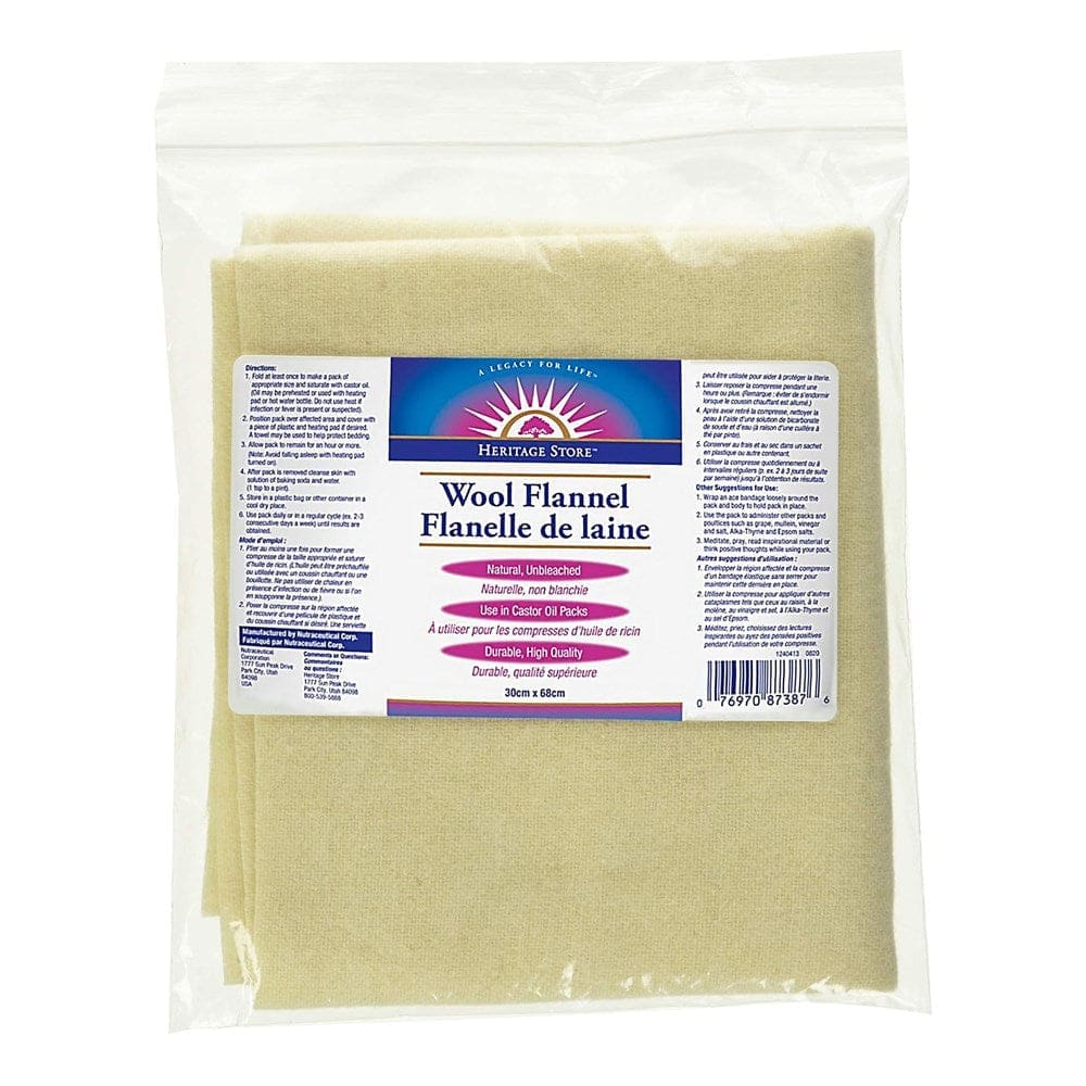 Designed to help castor oil more deeply absorb into your skin, Heritage Store Wool Flannel?s strong absorption quality keeps the castor where you want it. Natural and unbleached, our Wool Flannel is exceptionally durable and richly textured for maximum absorption.