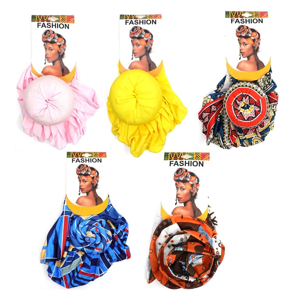 INTERVISION Pre Tied Turban Head Wrap (Pattern Assorted (60061))