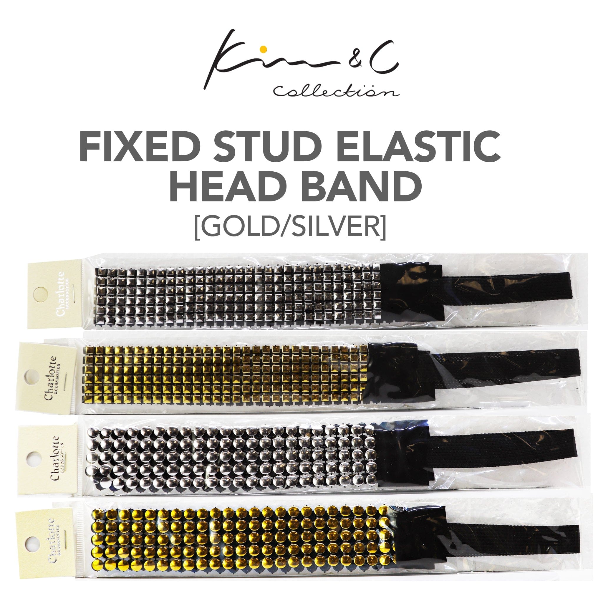 KIM & C Fixed Stud Elastic Head Band (Metal Gold & Silver Assorted)