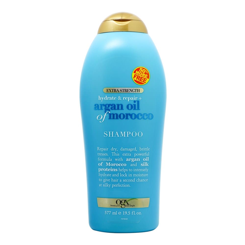 Hydrate, repair, and renew dry, damaged, brittle hair with OGX Extra Strength Hydrate & Repair + Argan Oil of Morocco Hydrating Hair Shampoo. Ideal for medium to coarse hair, the daily moisturizing shampoo quenches each strand as you lather up. Formulated with an extra-hydrating blend of water-based silk proteins and rich cold-pressed Moroccan argan oil, it helps revive hair to leave it cleansed, nourished and silky smooth. The repair shampoo also helps improve hair strength and reduce breakage, leaving you with touchable tresses that are soft but strong. Plus, the coconut milk, tangerine, and warm vanilla scent makes lathering up an all-around sensory experience that leaves locks with an irresistibly good smell. Paraben-free with sulfate-free surfactants, this nourishing shampoo is gentle enough to give locks a radiant shine. For a full hair care routine that’ll leave your hair lush, soft and divinely shiny, pair with OGX Extra Strength Argan Oil of Morocco Conditioner.