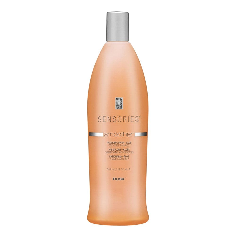 RUSK Sensories Smoother Passionflower and Aloe Smoothing Shampoo is specially formulated to keep unruly hair in check. Aloe helps soothe while emollients restore moisture balance. Gently removes unwanted mineral salts and styling product buildup.