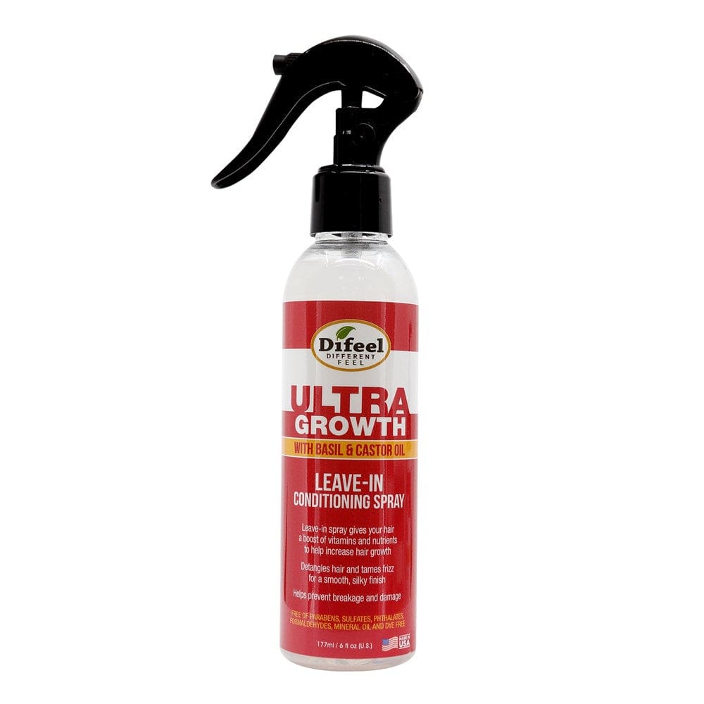 - LEAVE IN CONDITIONER SPRAY HAIR GROWTH: Difeel?s Ultra Growth Hair Oil with Basil and Castor Oil?s Leave in Conditioning Spray is a nature based essential oil formula that works with the body?s chemistry to restore hair?s beauty and get it growing stronger and thicker.